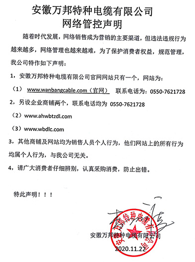 鄭重聲明:安徽萬邦特種電纜有限公司官方網站為:www_wanbangcable_com.zzjd1688.com.cn,除此之外無任何子網站或合作網站,其余均為假冒偽劣。電話:0550-7621728 13485756353 地 址:安徽省天長市滁州高新技術產業開發區經四路29號